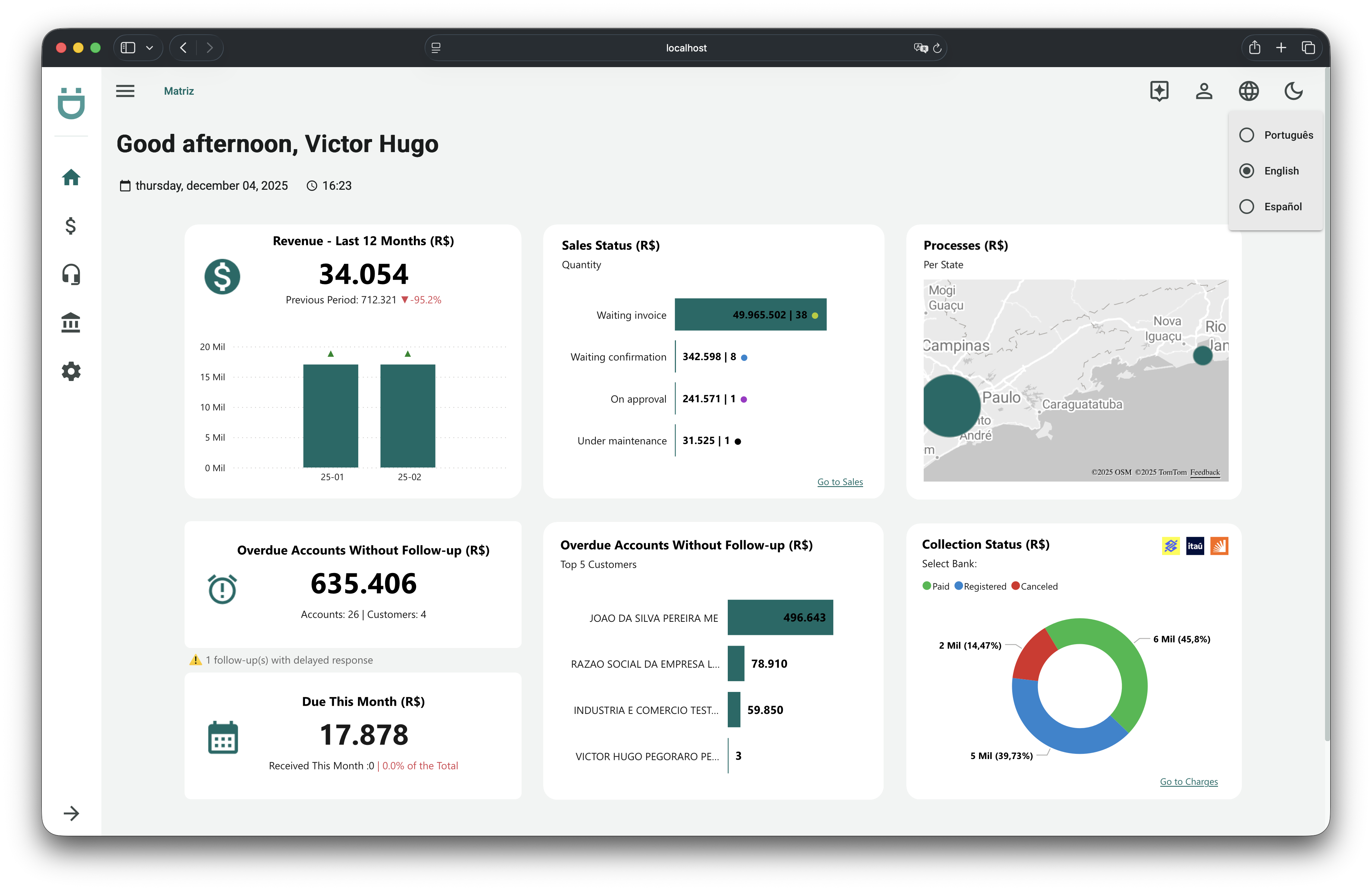A soulsys plataforma oferece suporte nativo a multi-idiomas, permitindo que cada usuário utilize a interface no idioma de sua preferência. Essa funcionalidade melhora a experiência do usuário e facilita a adoção da plataforma em empresas que operam em diferentes regiões ou possuem equipes multilíngues.