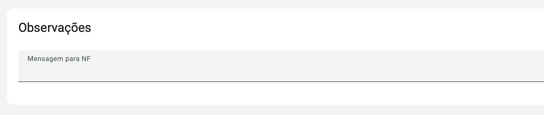 A seção Observações permite informar uma Mensagem para Nota Fiscal (campo opcional).