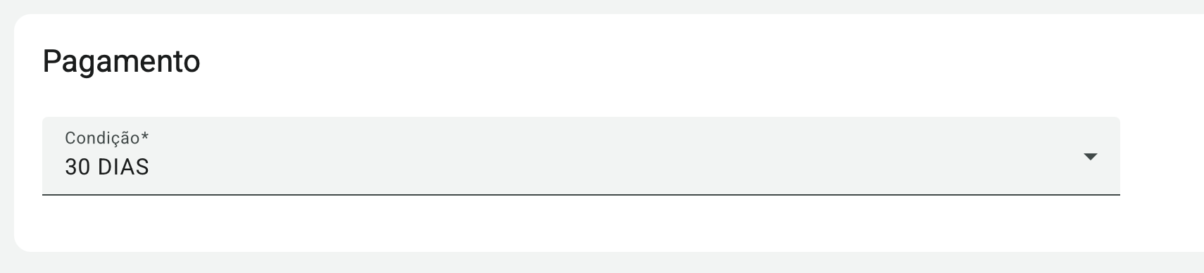 Selecione a condição de pagamento da venda através da seção Pagamento.