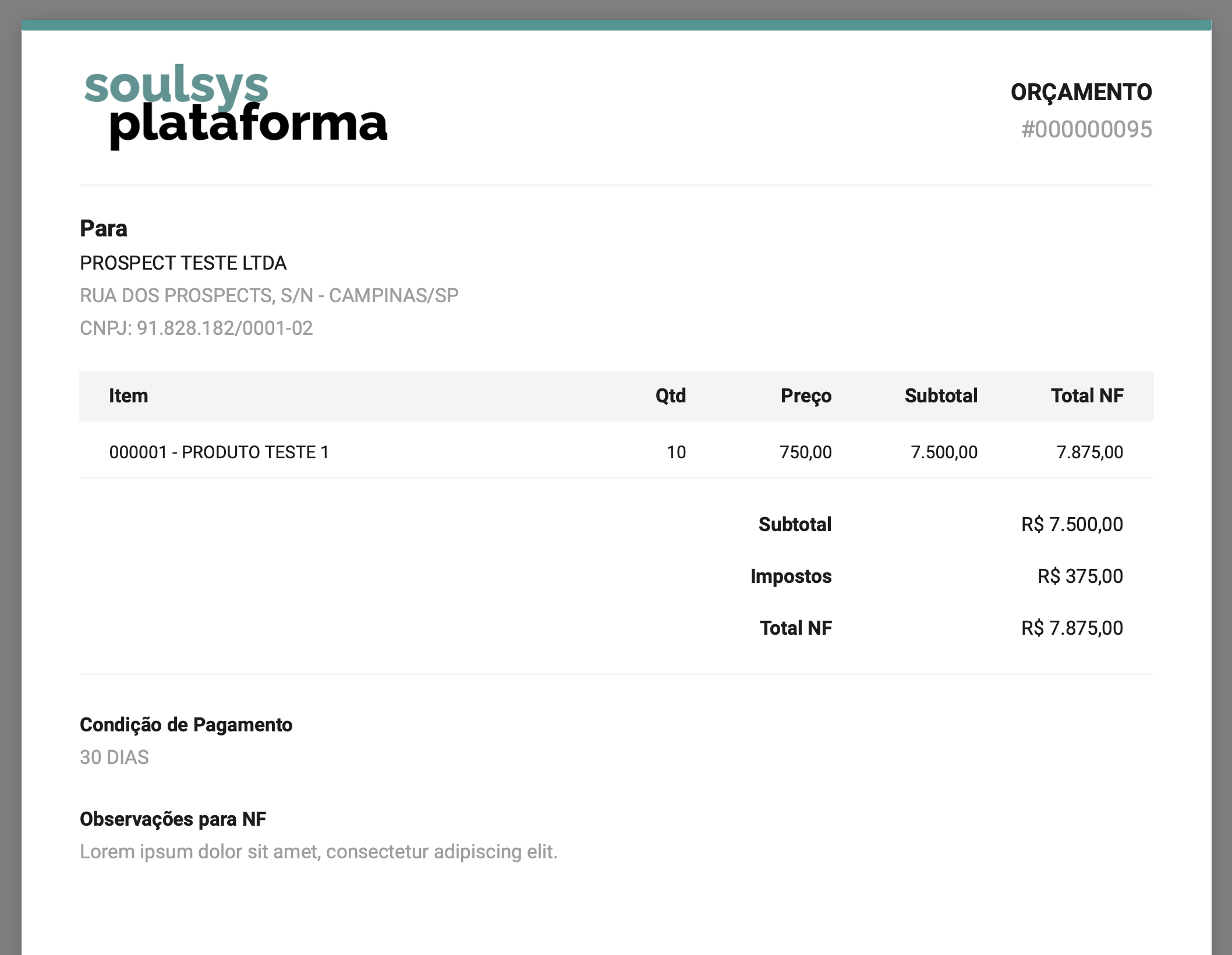 O layout e os dados exibidos no PDF podem ser totalmente personalizados de acordo com as necessidades da empresa.