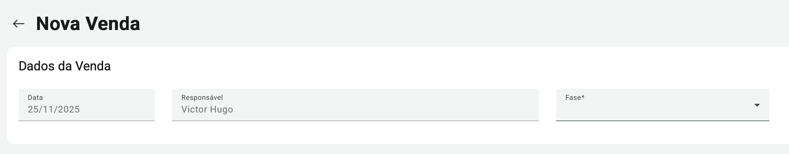 A seção Dados da Venda exibe informações gerais sobre a venda, como a data de emissão e o nome do responsável (usuário logado).